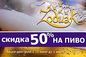 Ежедневно в кафе "Зодиак" Вы сможете приобрести пиво с 50% скидкой.